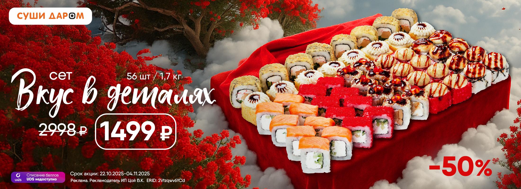 Роллы: Тосаго, Филадельфия калифорнийская, Филадельфия лайт. Жареные: Далматин, Макки-Такки. Запечённые: Дабл чиз, Сигай
