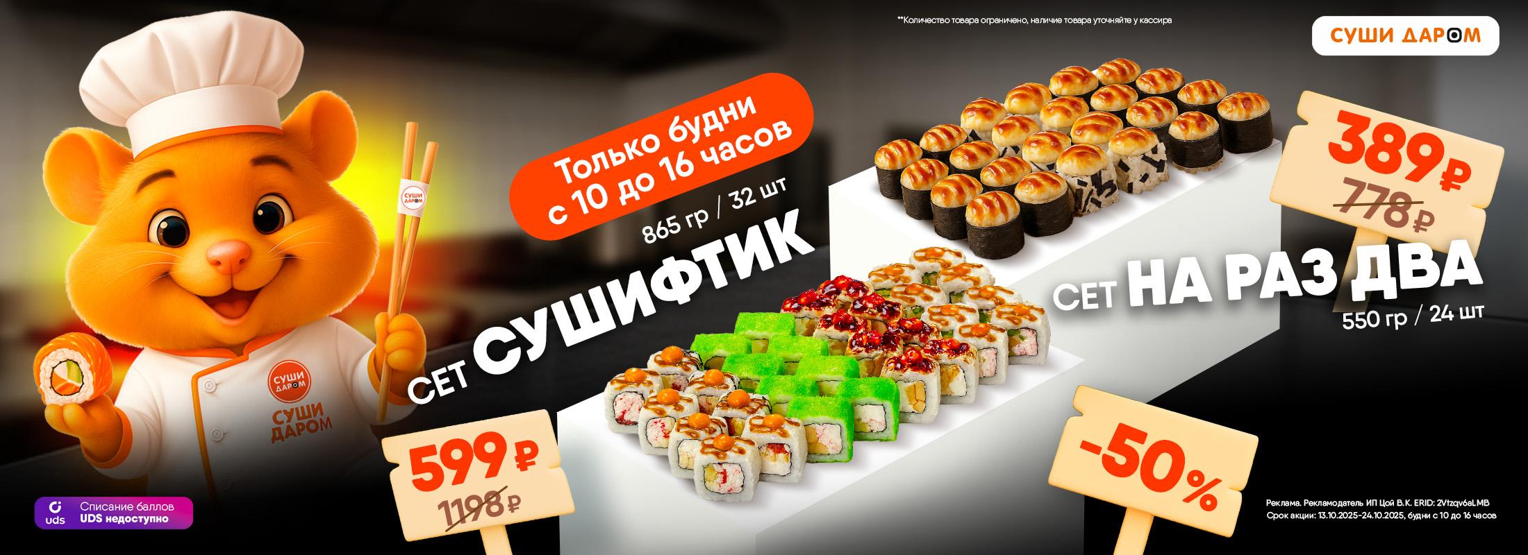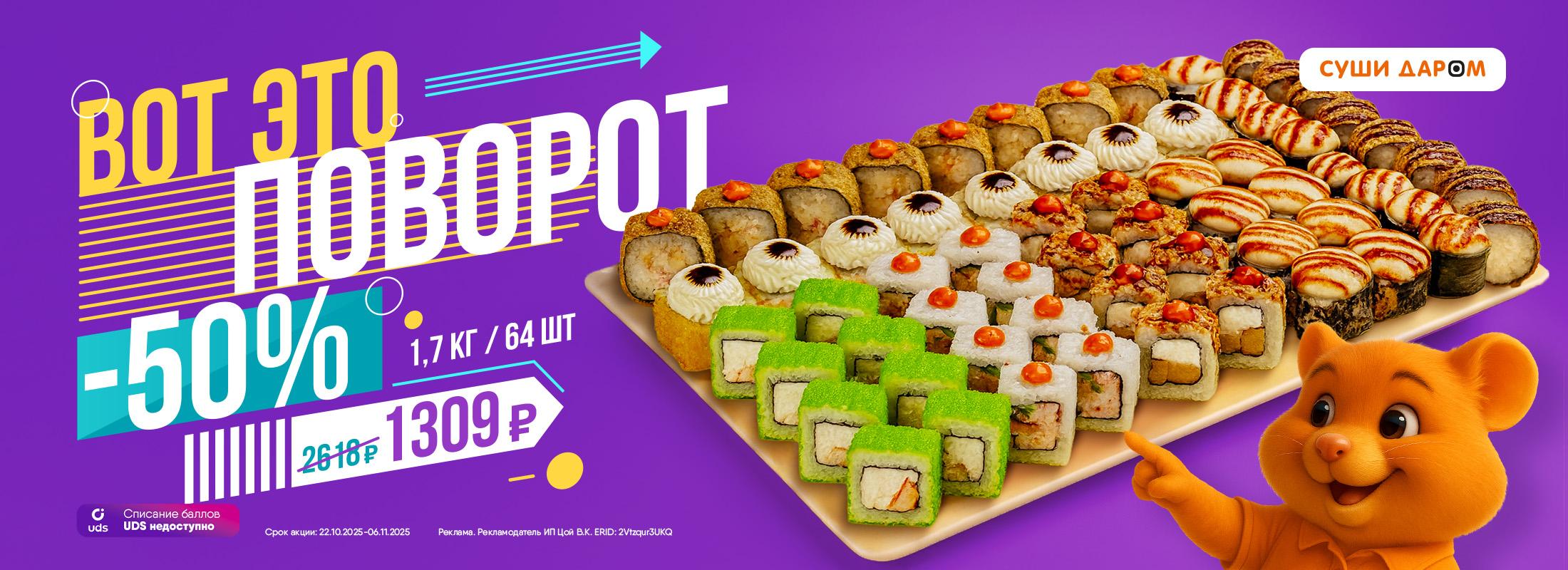 Роллы: Гриямо, Милтон. Жареные: Макки-Такки, Лава чикен. Запечённые: Дабл чиз, мини-ролл Томаго чиз