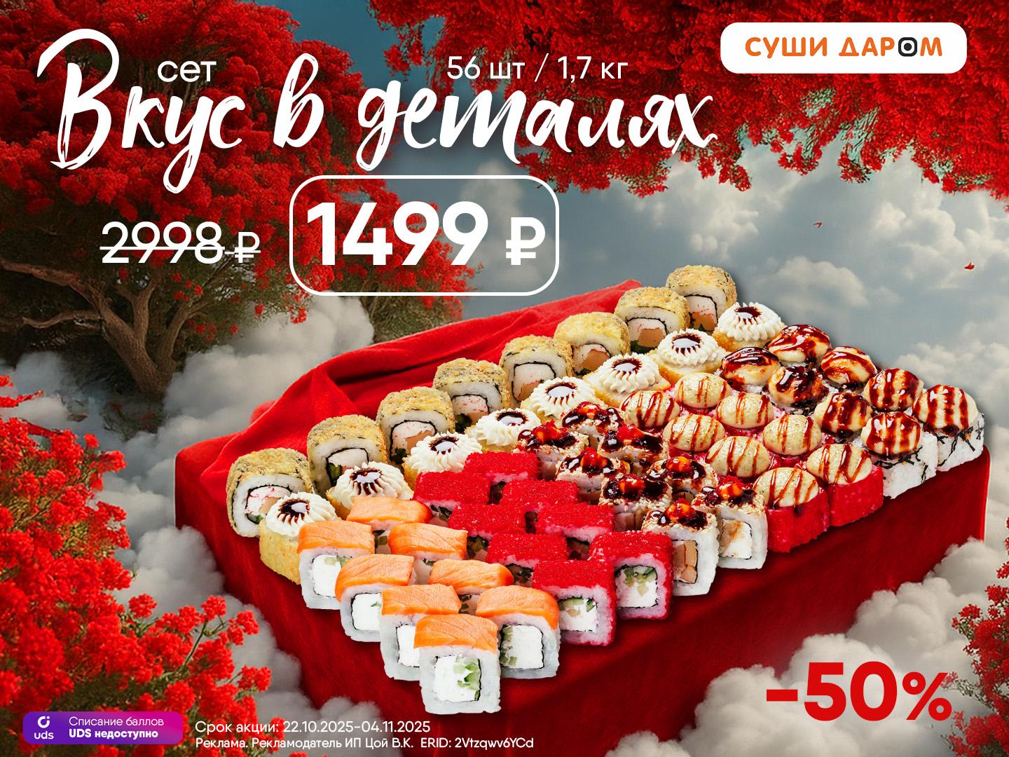 Премиум-композиция, собранная с точностью до миллиметра, но по цене которая остаётся в духе “Суши Даром”.
